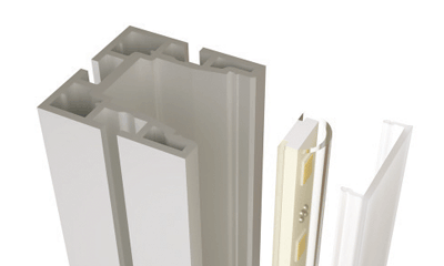 Armoniza con la familia de perfiles Maxima Light y ofrece una cara iluminada que resalta el objeto o la imagen colocada dentro del área construida.